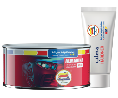 Pate de deux récipient ; composé essentiellement au polyester ; force de collage au fer très élevée ; ponçage facile, facile à mélanger et à appliquer ; utiliser pour les toits de voiture endommagés ; pour remplir les pores résultant de préparation automobile. Utilisé pour les structures de voiture et les surfaces métalliques.