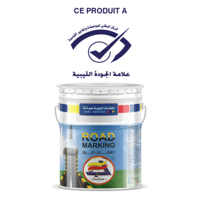 Peinture acrylique de haute qualité, fabriquée conformément à la spécification standard environnementale n° 584 de l’année 2009 relative aux peintures de marquage routier, et certifiée par la marque de qualité libyenne. Elle résiste aux conditions climatiques, aux produits chimiques et pétroliers, ainsi qu’à l’abrasion. Elle est fabriquée à partir des meilleures matières premières au monde.